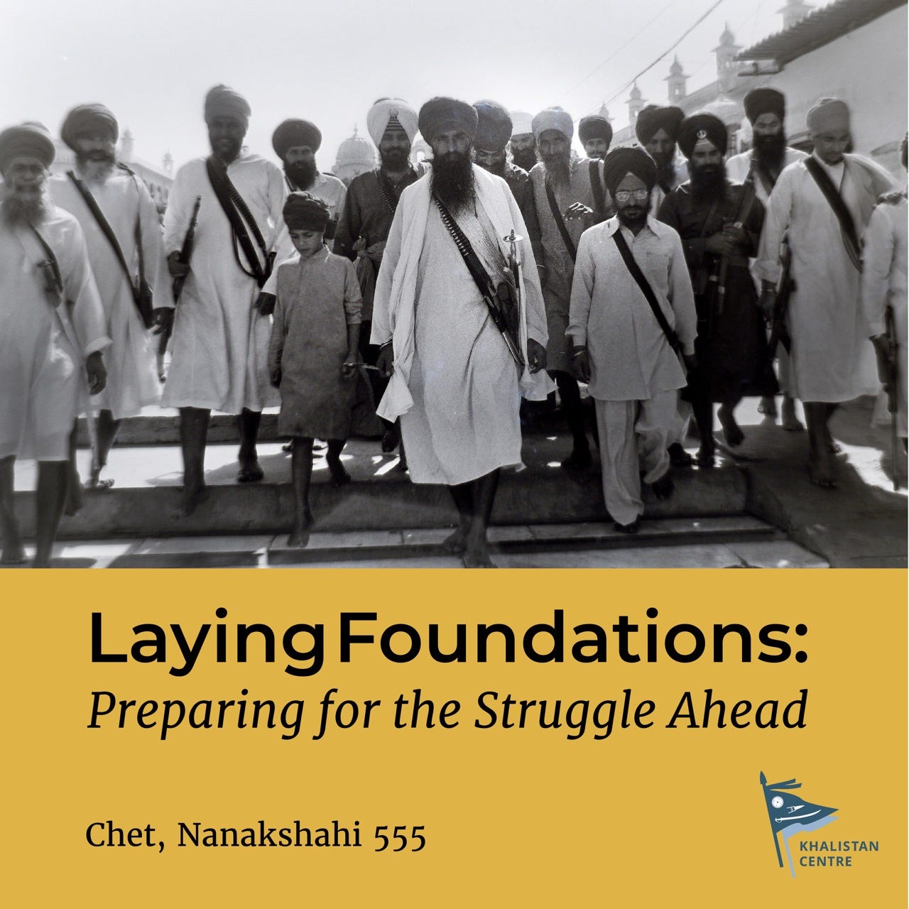 On March 31st the Khalistan Centre published a document called Laying Foundations: Preparing for the Struggle Ahead. This document covers significant ground in an accessible format to serve as an introductory guide to Sikh struggle. The sections around Locating the Sikh sangarsh, Khalsa jee’s Vision and Sidhant, and Footsteps of our Shaheeds are invaluable in outlining the ground from which the Sikh struggle is fought. Building on the theory the document identifies key lessons and actions. We highly recommend the document is read in full, the below excerpt is taken from the introduction:
